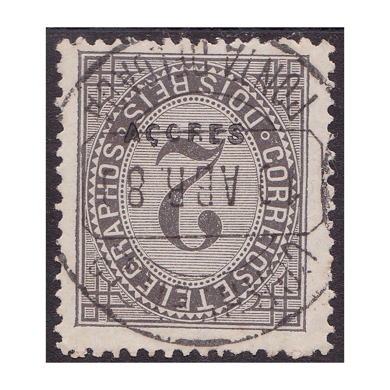 Nº 51 selo 2 réis preto SOBRECARGA VERMELHA, denteado 12½. Exemplar em boas condições.