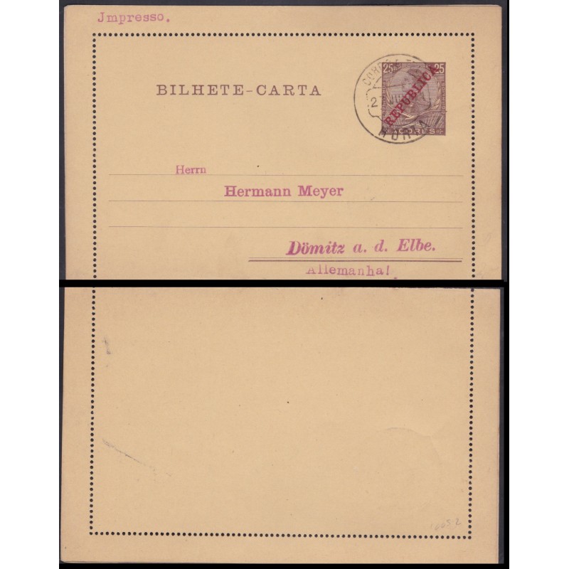 Açores - Inteiro Postal circulado em 12 de Abril de 1892. Exemplar em boas condições.
