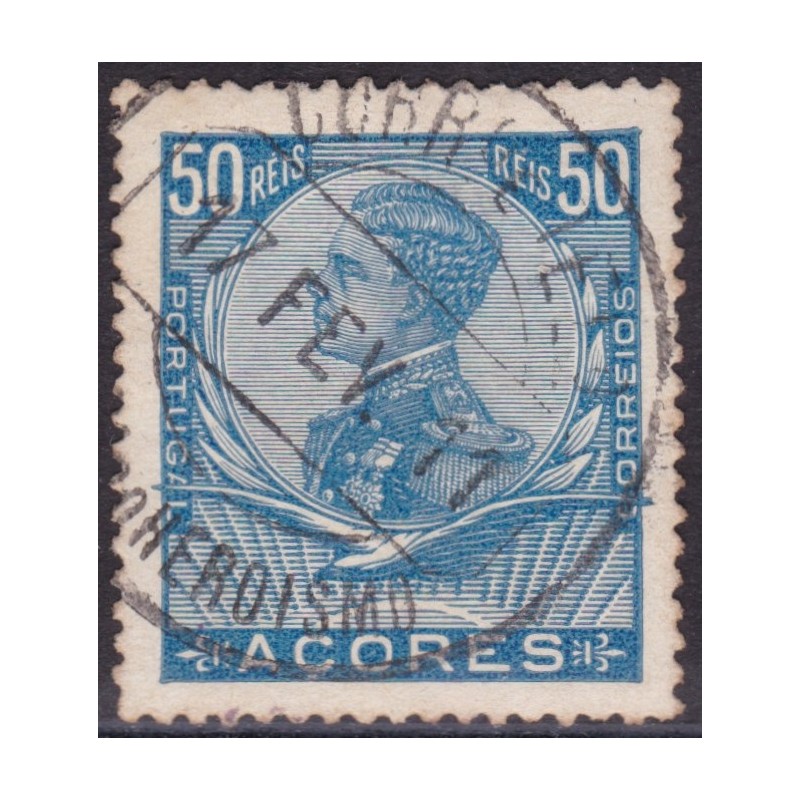 Nº 113 selo de 50 réis azul usado. Exemplar em boas condições.
