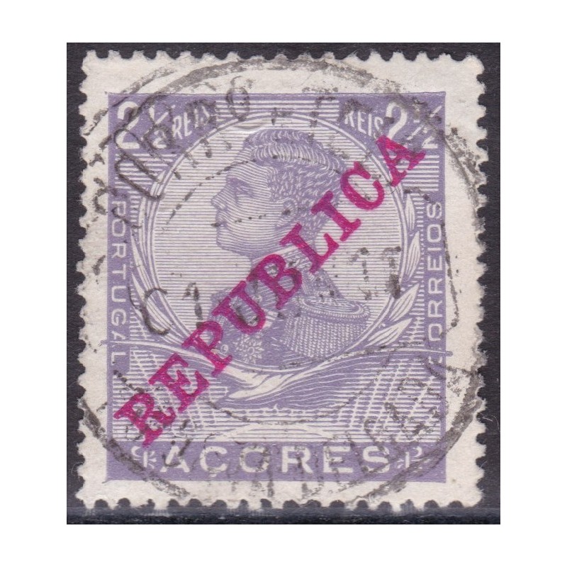 FRAGMENTO COM SELO BIPARTIDO Nº 122 com marca de Angra do Heroísmo de 4 de Fevereiro de 1912. Exemplar em boas condições.
