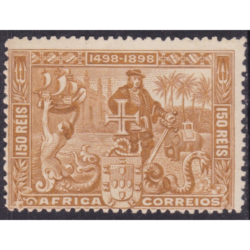 Bloco do selo nº 3 usado com carimbo oval de São Vicente circulado a 30 Abril de 1898. Exemplar com dois selos danificado, ver imagem do verso.