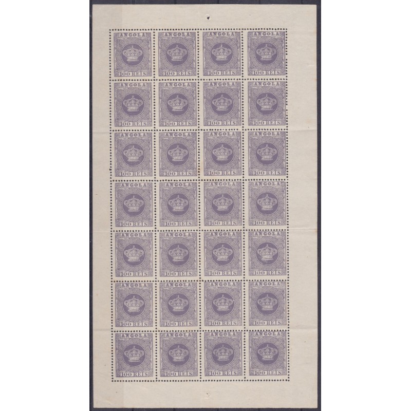 ANGOLA - Folha do selo nº 7b, denteado 13½ sem goma. Exemplar em boas condições.