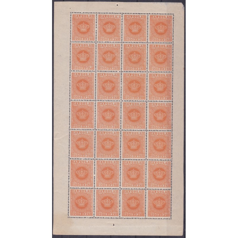 ANGOLA - Folha do selo nº 8d, denteado 13½ sem charneira e goma original. Exemplar em boas condições.