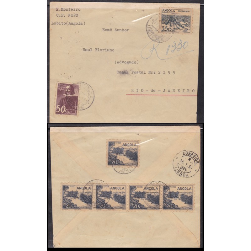 Carta circula em Outubro de 1952 com marca de passagem por Luanda. Exemplar em boas condições.