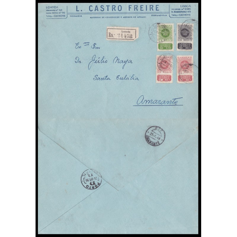 Carta Registada circula em 10 de Abril de 1950 com marca de passagem pelo Porto no verso. Sobrescrito A5. Exemplar em boas condições.
