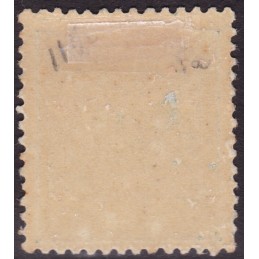 Selo nº 9 com charneira em papel porcelana e denteado 13½. Exemplar com defeito no canto inferior.
