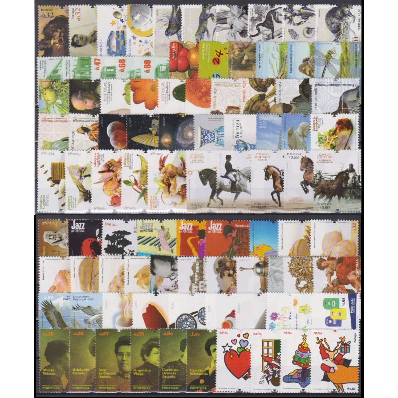 NÃO INCLUI SELOS AUTO-ADESIVOS - Todos os selos emitidos sem charneira e goma original. Não inclui também os selos dos blocos, folhas miniatura e selos corporates.