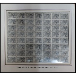 FOLHA INTEIRA DA TAXA ANTONINA PORTUGUESA PARA JORNAIS COM PASSAPARTOUT. Selo nº 111 de 2½ reis preto sem goma. Exemplar em boas condições.