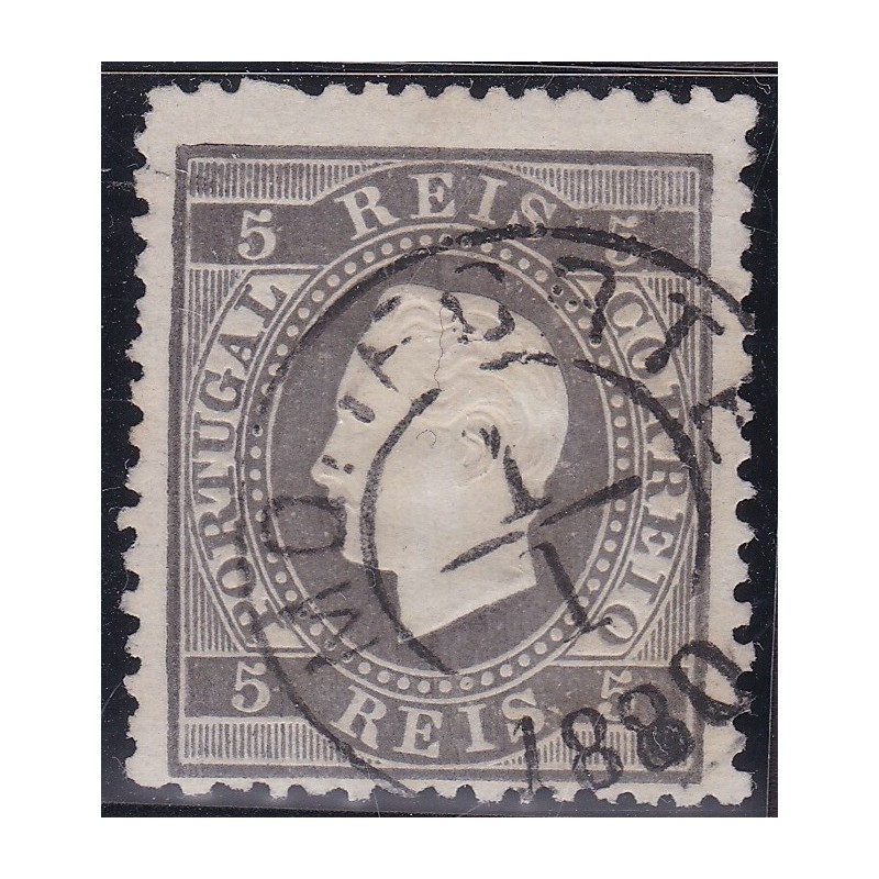 MONFORTE - Nº 36 selo de 5 réis preto, papel liso denteado 12½. carimbo Tipo 1852 (pequeno). Exemplar com pequenos defeitos.