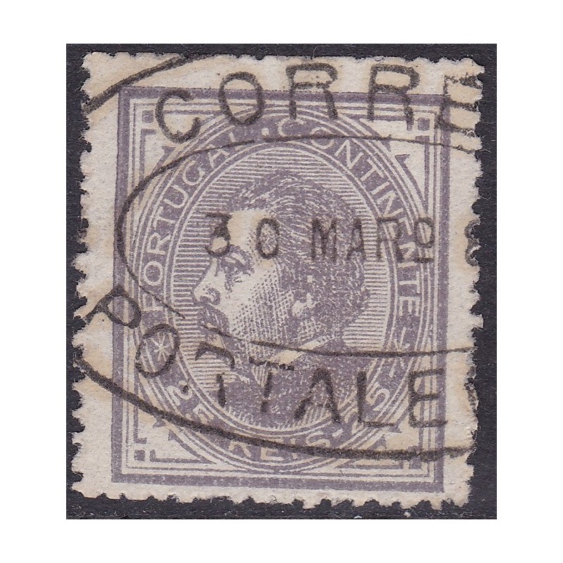PORTALEGRE - Nº 54 selo de 25 réis cinzento papel liso denteado 12½.  Exemplar com denteado irregular.