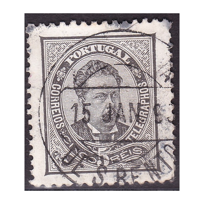 LISBOA - Nº 54 selo de 25 reis cinzento, papel liso denteado12½ . Exemplar com denteado irregular.