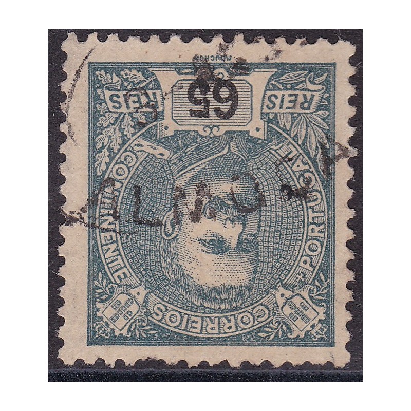 ALMOÇAGEME - Nº 143 selo de 65 réis azul cinzento. Exemplar com denteado irregular.