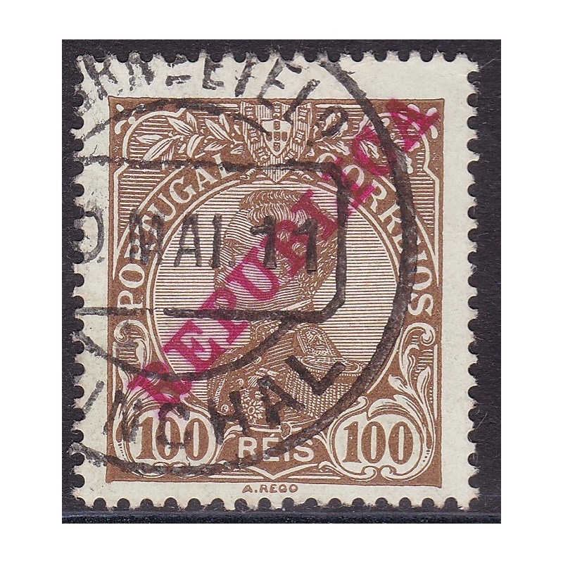 FUNCHAL - Nº 179 selo de 100 réis bistre s/verde. Exemplar em boas condições.