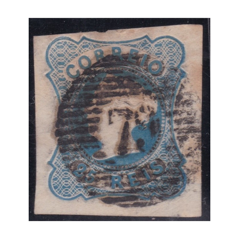 POMBAL (95) - Nº 7 selo Pérolas juntas de 25 reis azul - Exemplar margens normais.