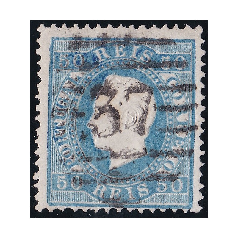 SETÚBAL (37) - Nº 50 selo de 50 reis azul papel liso denteado 12½. Exemplar em boas condições.