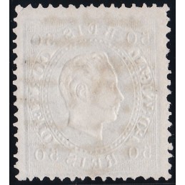 SETÚBAL (37) - Nº 54 selo de 25 reis cinzento, papel liso denteado13½ . Exemplar com denteado irregular.