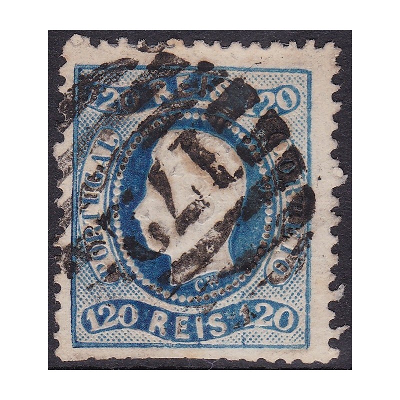 ELVAS (172) - Nº 34 Selo de 120 réis azul . Exemplar com denteado defeituoso.