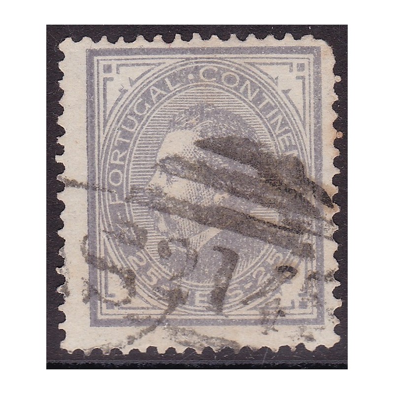 LAGOS (214) - Nº 54 selo de 25 reis cinzento, papel liso denteado12½ . Exemplar com falta de um canto.