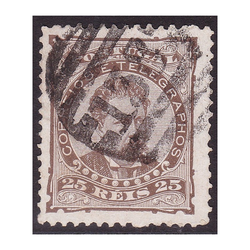 SETÚBAL (37) - Nº 54 selo de 25 reis cinzento, papel liso denteado13½ . Exemplar com denteado irregular.