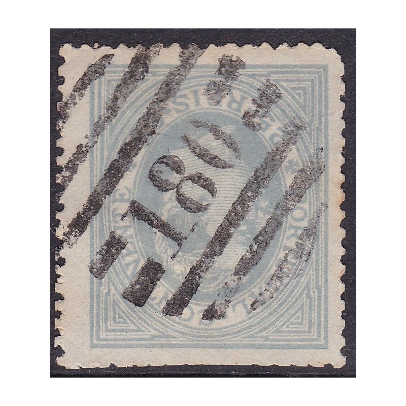 NIZA (180) - Nº 53 selo de 25 reis azul cinzento, papel liso denteado13½ . Exemplar com denteado defeituoso.
