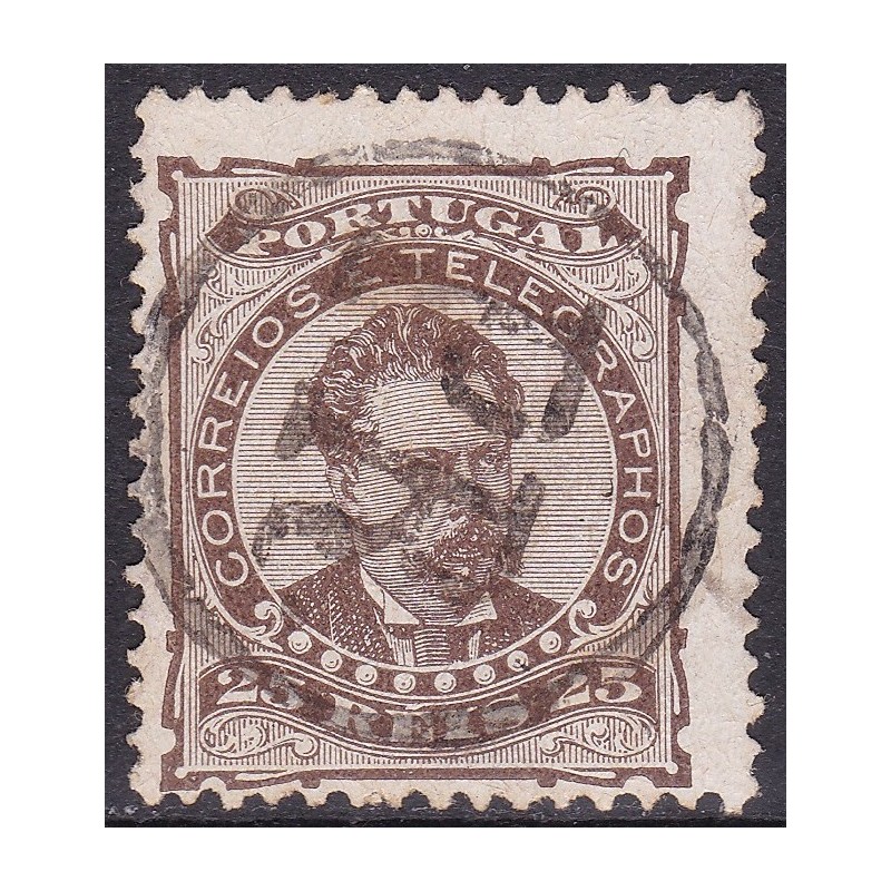 DA FOZ e D,MDO c. DE PINHEL - Carimbo utilizado pela direção dos correios - Nº 5 selo de 25 réis carmim papel liso denteado 13½. Exemplar em boas condições.