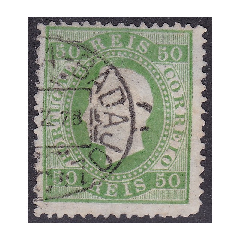 CORREIO FERROVIÁRIO - LISBOA/BADAJOZ. Nº 41, selo de 50 verde, papel liso, denteado 12½, obliterado com carimbo batido a preto. Exemplar com um canto mais curto mas em boas condições.