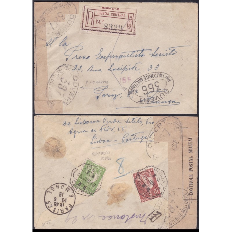 Sobrescrito circulado a 15 de Junho de 1919. Com uma Cinta de censura em papel com a legenda " Controle Posta Militar" e carimbos Oval Franceses . Exemplar em boas condições.
