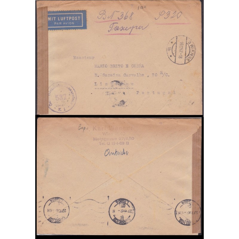 Sobrescrito circulado a 14 de Março de 1945. Com Cinta de censura em papel com a legenda "Aberto pela Censura Militar de Lisboa" e carimbo rectangular "4 Censura" a Violeta. Exemplar em boas condições.
