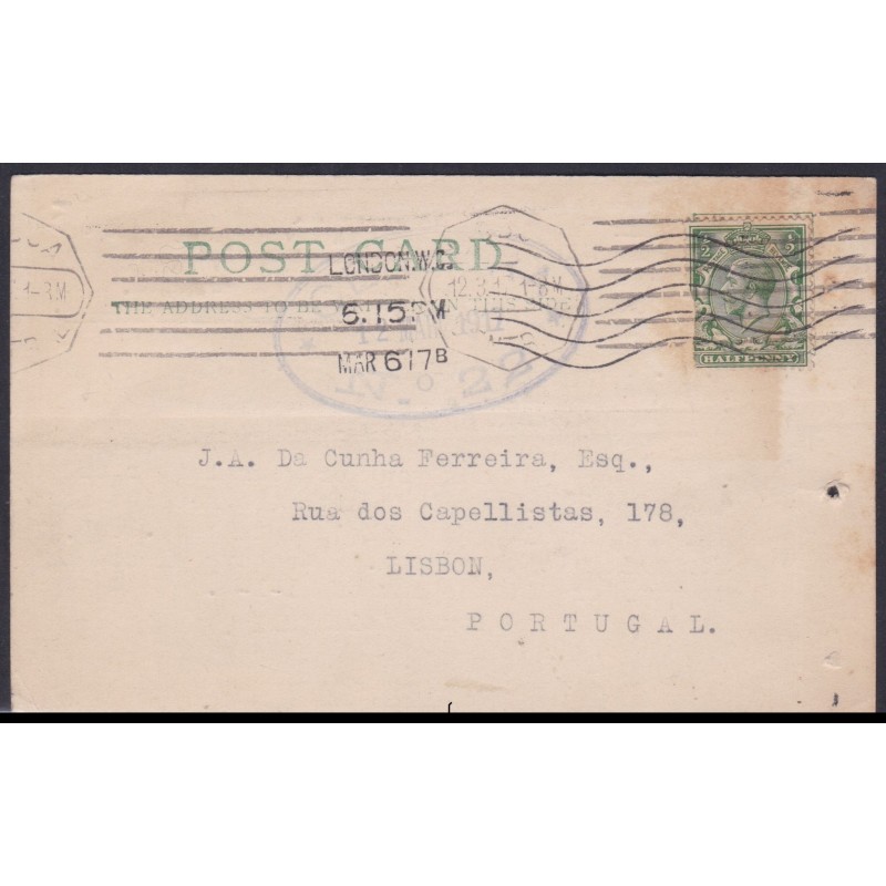 Postal censurado, circulado em 13 de Março de 1917. Exemplar em boas condições.