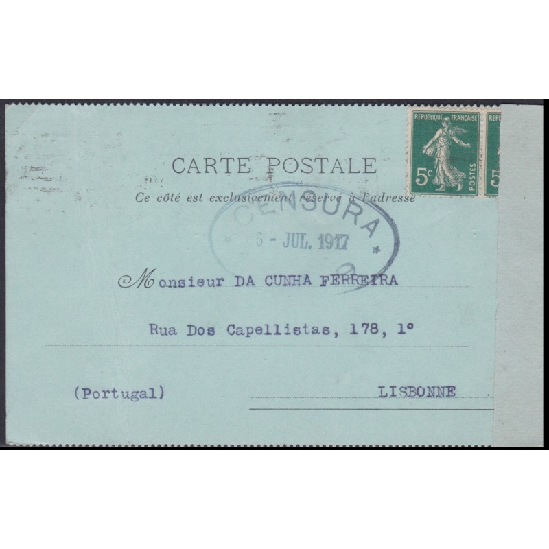 Postal censurado, circulado em 27 de Junho de 1917. Exemplar em boas condições.