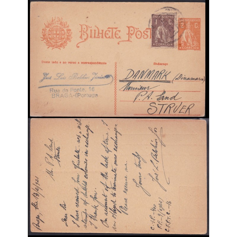 Inteiro Postal circulado em 13 de Fevereiro de 1921. Exemplar em boas condições.