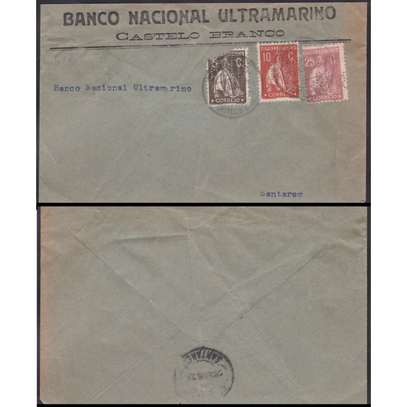 Carta circulado em 1924? Com selos perfurados B.N.A. Exemplar em boas condições.