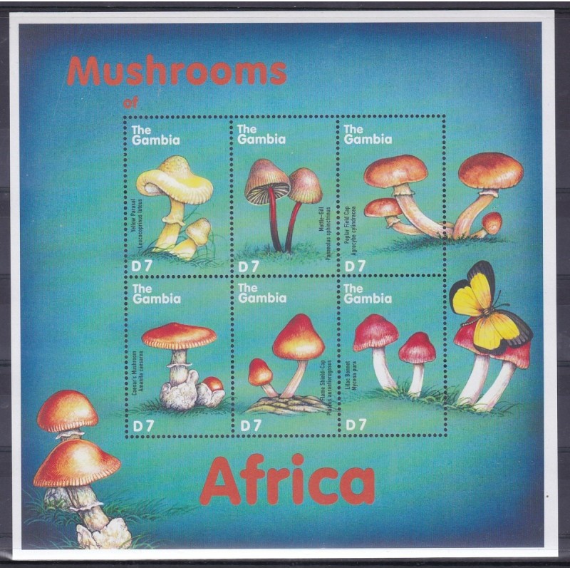Folha do tema cogumelos nova, com goma original e sem charneira. Em boas condições.