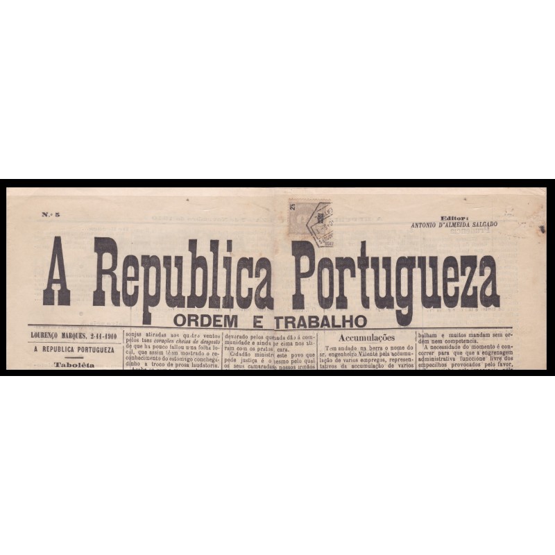Lourenço Marques - Jornal " A Republica Portuguesa" circulado em Novembro de 1910. Exemplar em boas condições.
