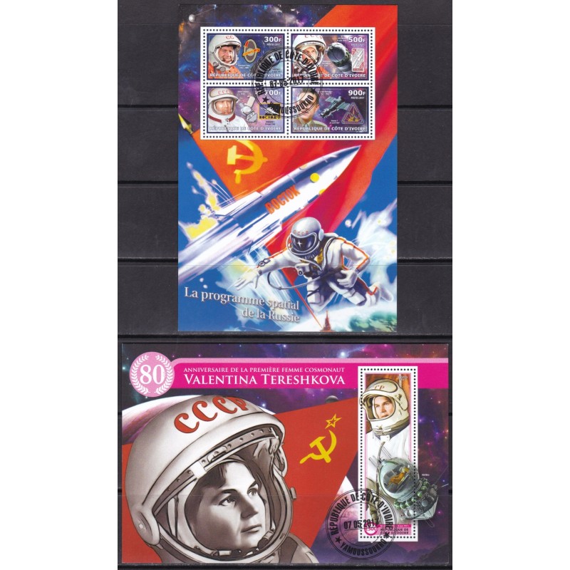 Astronautas - Folha e bloco usados. Exemplar em boas condições.