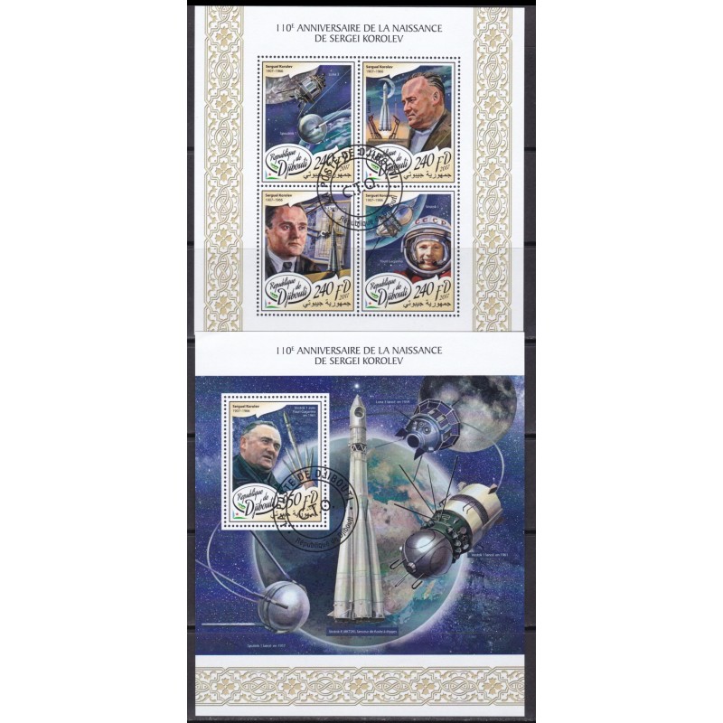 Astronautas - Folha e bloco usados. Exemplar em boas condições.