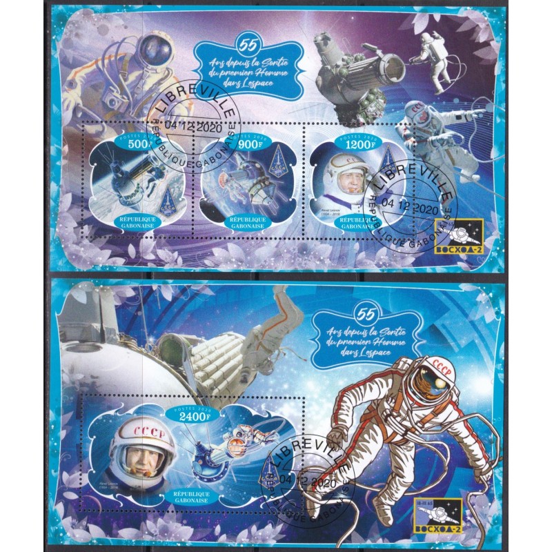 Astronautas - Folha e bloco usados. Exemplar em boas condições.