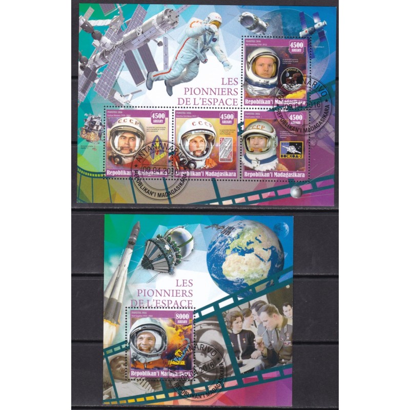 Astronautas - Folha e bloco usados. Exemplar em boas condições.