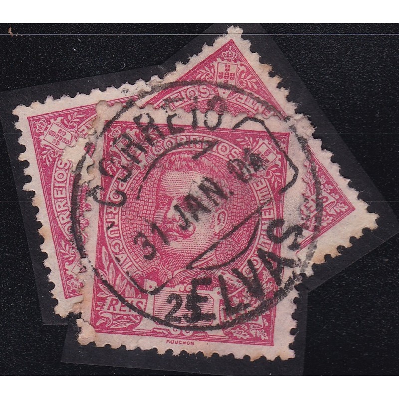 ELVAS - Nº 141 selo de 25 réis, obliterado com carimbo batido a preta. Exemplar boas condições.