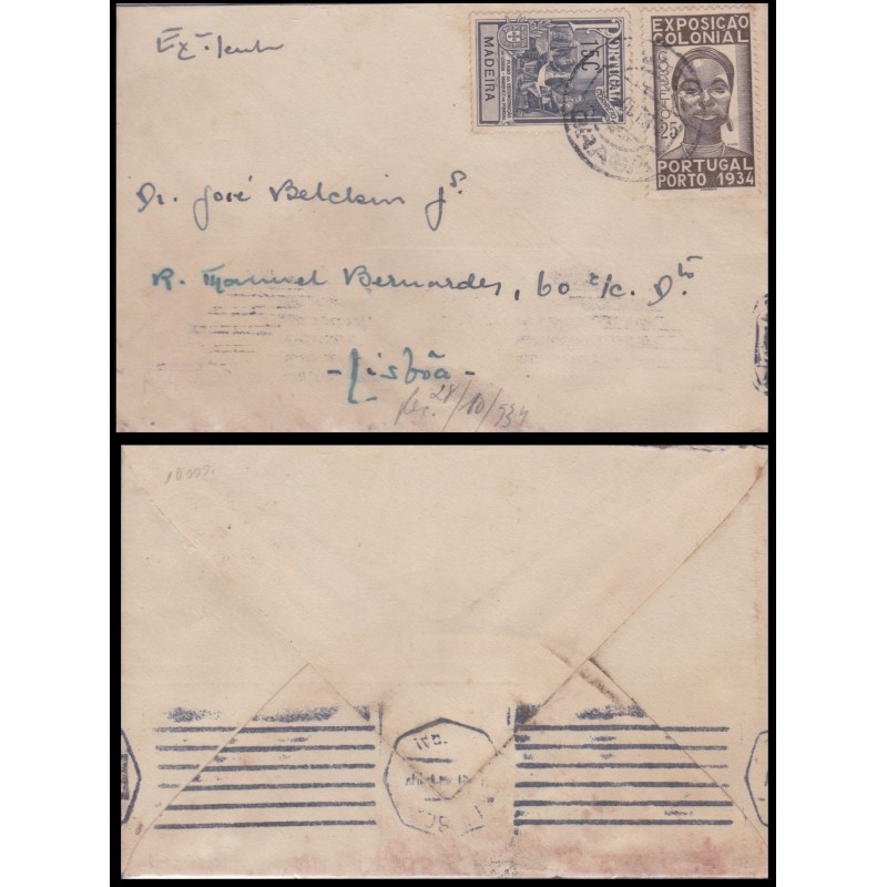 SELO DE RECURSO DA MADEIRA - Carta circulada em 28 de Outubro de 1934, com selo do Marques de Pombal 15 Cent. Madeira. Exemplar em boas condições.