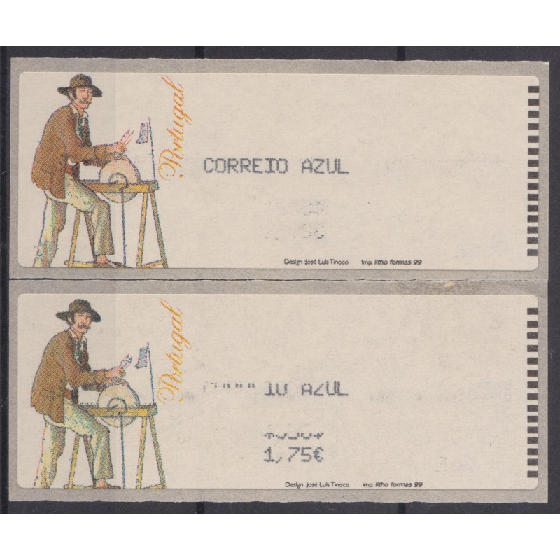 IMPRESSÃO PARCIAL das TAXAS A PRETO - 2 Etiquetas 18A de correio azul com o valor de 350$/€1.75. Exemplar em boas condições.