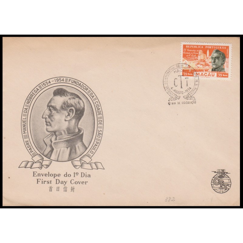Macau - Sobrescrito com carimbo de 1º dia nº 285. Exemplar em boas condições.