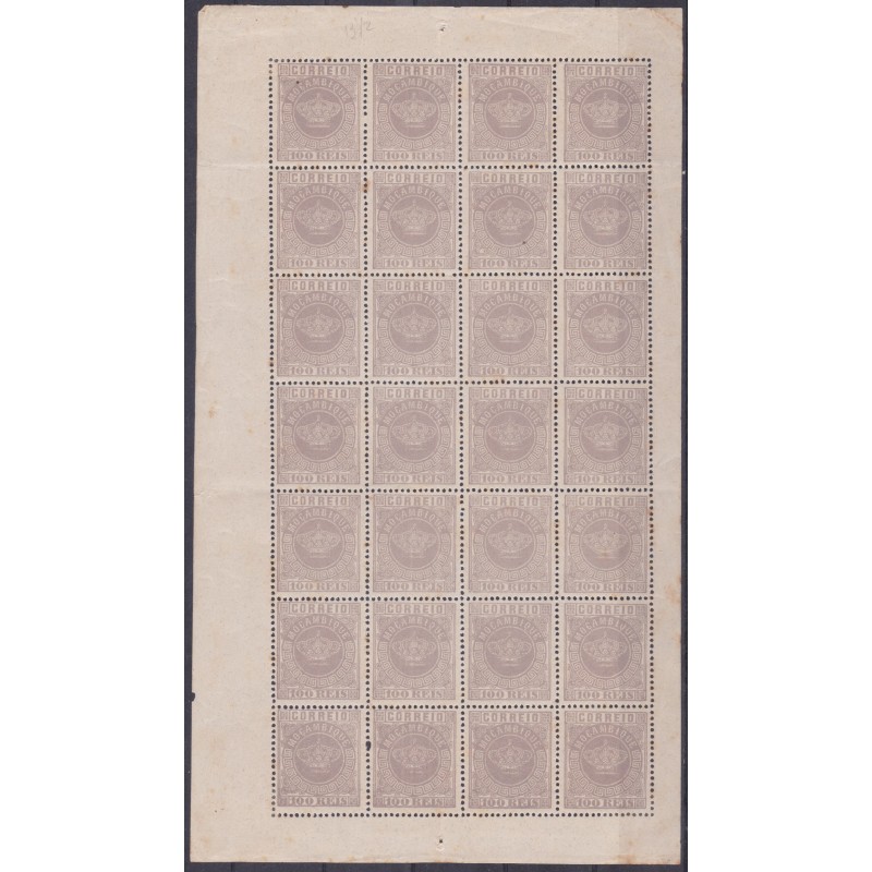 MOÇAMBIQUE - Folha do selo nº 7, denteado 12½ sem charneira e goma original. Exemplar em boas condições.