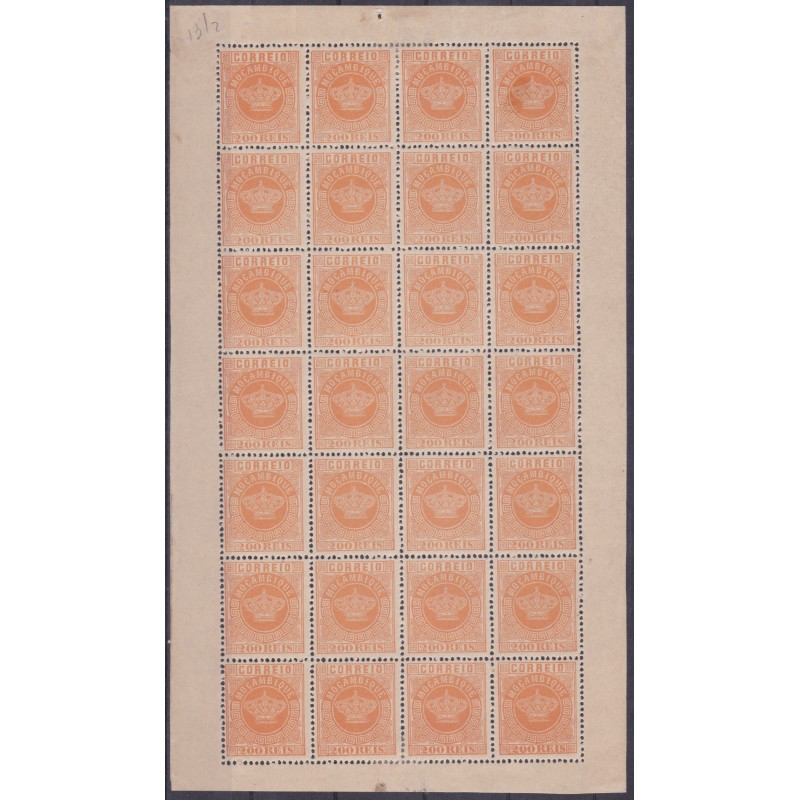 MOÇAMBIQUE - Folha do selo nº 13, denteado 13½ sem charneira e goma original. Exemplar com pequenas manchas do oxido. ver imagem de verso.
