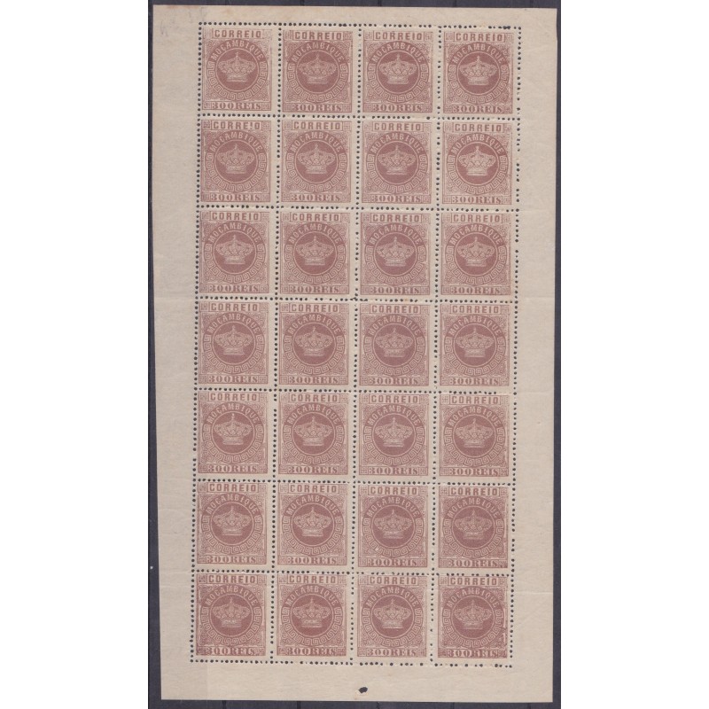 MOÇAMBIQUE - Folha do selo nº 8, denteado 13½ sem charneira e goma original. Exemplar em boas condições