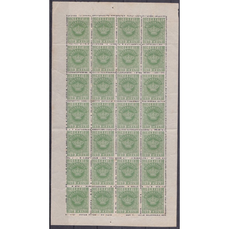 MOÇAMBIQUE - Folha do selo nº 10, denteado 13½ sem charneira e goma original. Exemplar com pequenas manchas do oxido. ver imagem de verso.