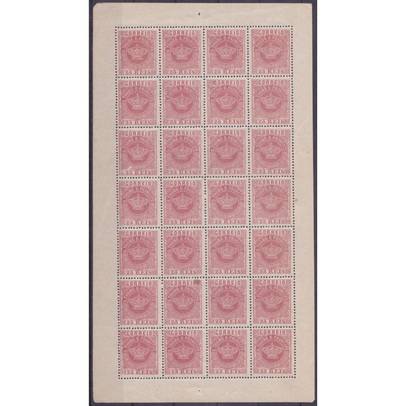 São Tomé e Príncipe - Folha do selo nº 4 denteado 13½ sem charneira e goma original. Exemplar em boas condições.