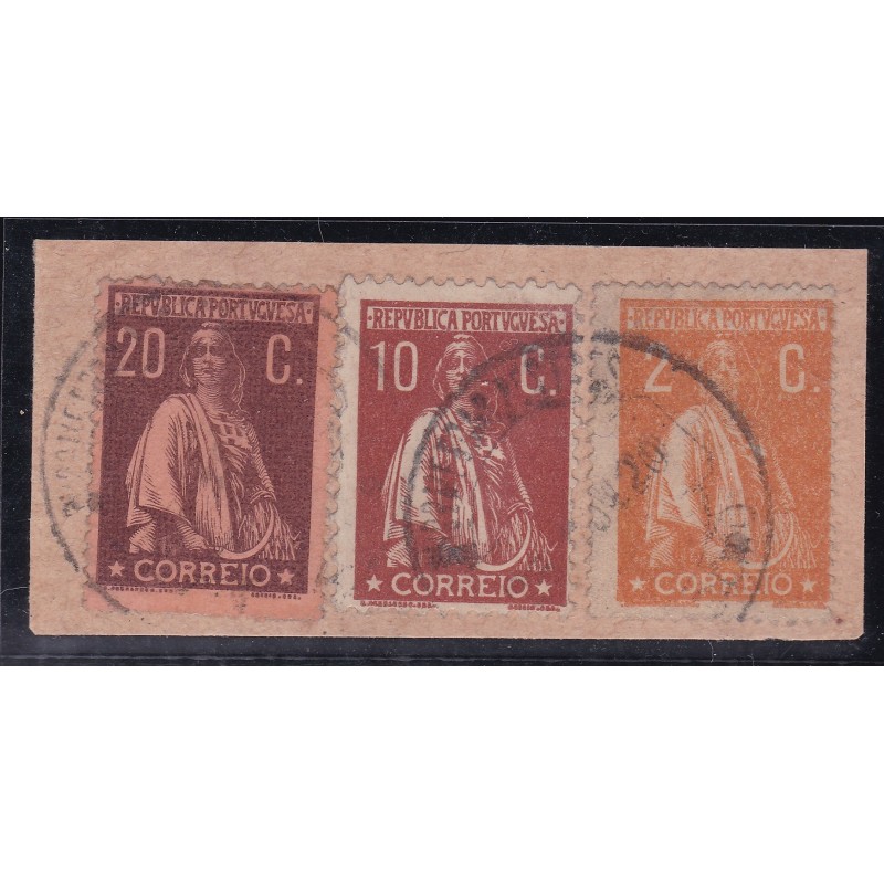 Fragmento com selos nºs 215, 223 e 233. Exemplar em boas condições.