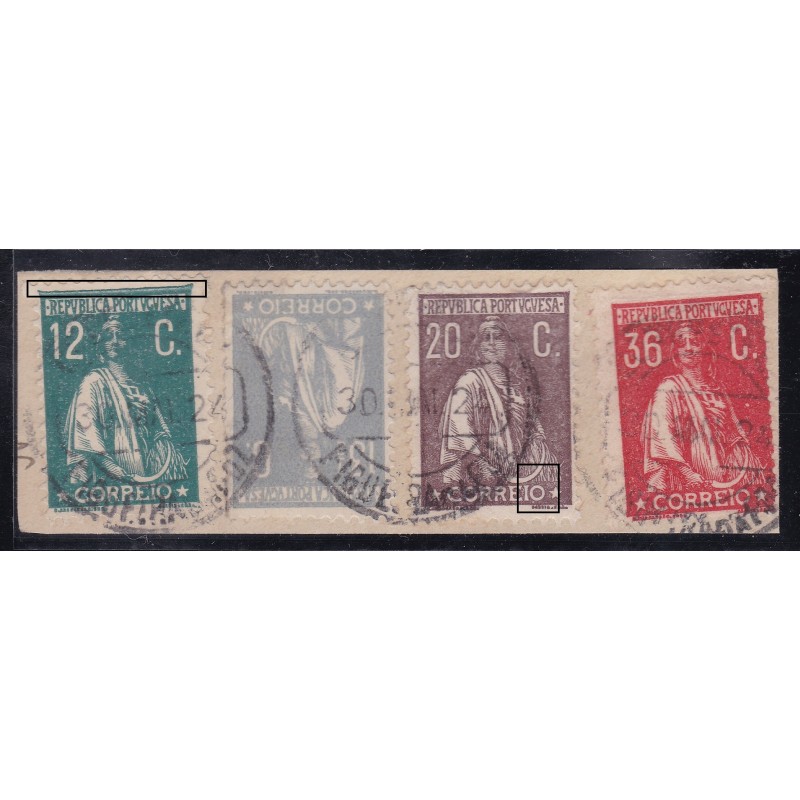Figueira da Foz - Fragmento com selos nºs 231, 238, 240 e 243. Exemplar em boas condições.