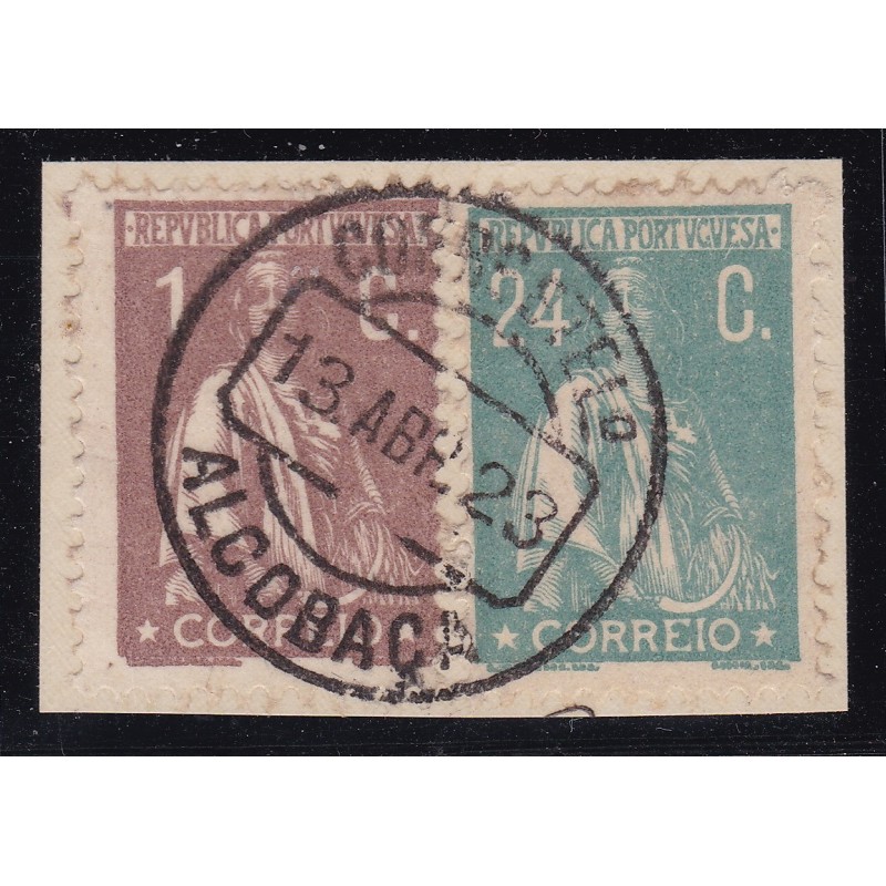 Alcobaça - Fragmento com selos nºs 221 e 241. Exemplar em boas condições.